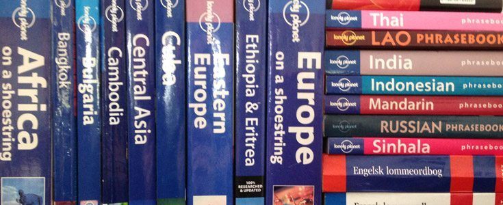 En Kindle Paperwhite med Lonelyplanets bøger virkede perfekt for mig på min sidste lange rejse. Samtidig kunne jeg også have mine andre bøger på den. Nogle gange køber jeg et bundle, dvs både den fysiske plus elektroniske bog, så har jeg den også til reolen 😉